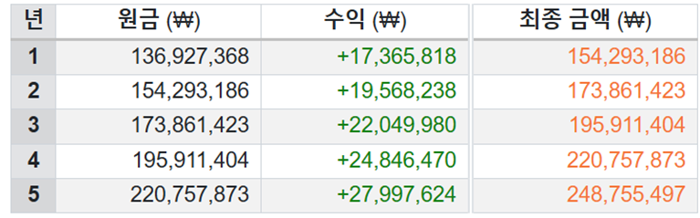 약 5억 4천의 총액을 계좌2에 모을 수가 있겠네요.