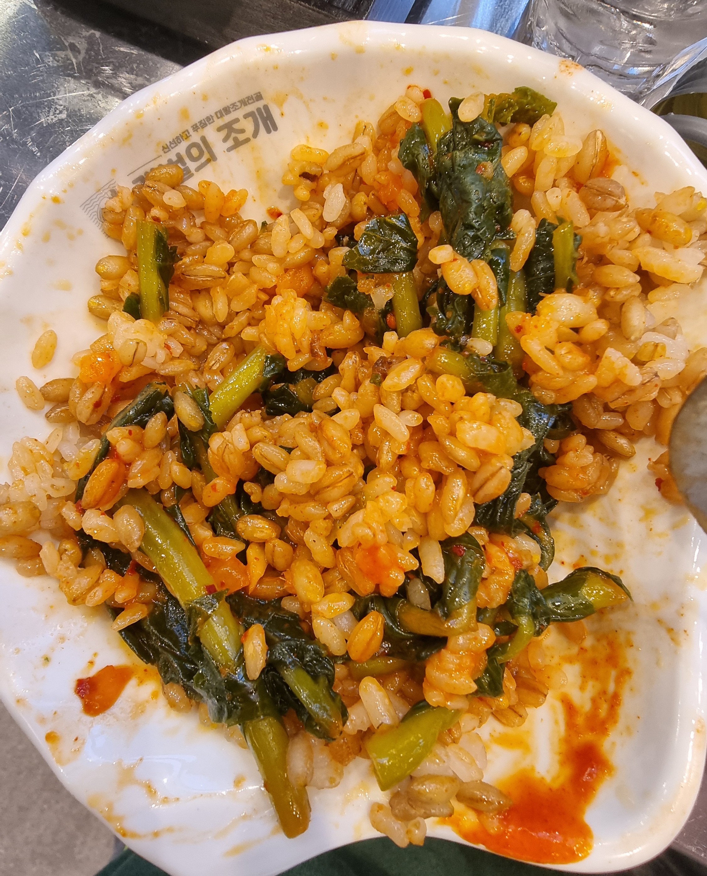 . 참기름과 고추장 그리고 열무김치가 배치되어 있고 조리가 되기를 기다리면서 무료한 시간에 허기진 배를 달래면서 한 그릇 뚝딱하기에는 매우 괜찮았다.